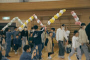 引継式では、初めに5年生が踊りました。その後、5年生から4年生に踊りで使う手ぬぐいを引き継ぎました。最後に4年生が踊りを披露しました。