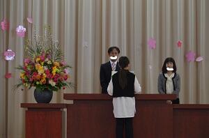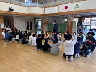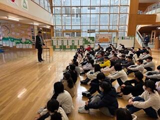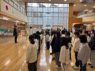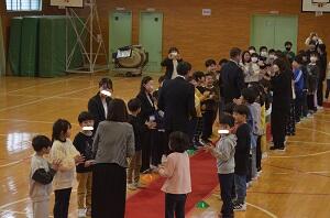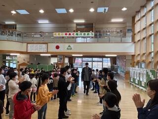 3月17日(月)に今年度ALTとして来校し、各学級の外国語科や外国語活動の指導をしていただいた先生とのお別れの式を行いました。先生のお話の後、代表児童のお話があり、最後は全校児童で花道を作り、みんなで見送りました。来年度からはここから離れた町でALTとして働くそうです。今後の御活躍をお祈りいたします。