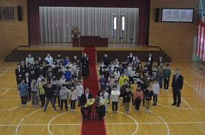 3月27日(木)に離任式を行いました。今年度は校長と学校補助員の2名の転出です。ほとんどの子供たちが出席し、2名の職員を見送りました。転出される職員の皆様、本当にありがとうございました。次のステージでも活躍されることを祈念しております。お元気で!