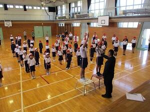 鶯沢小学校では、「体をきたえる子供」を目指す児童像の一つとしており、子供たちの体力向上を目標としています。現在、体力・運動能力調査をしています。種目は、「立ち幅跳び」「反復横跳び」「上体起こし」「長座体前屈」「20mシャトルラン」「ソフトボール投げ」「50m走」「握力」の8つです。測定場所に「全力発揮のポイント」や「宮城県と鶯沢小学校の平均記録」などを掲示し、自分の最高記録を目指しています。この調査の結果を体育の学習指導の参考としたり、子供たちが運動について興味を持って、自分の体力を高めたりし、健康的な生活をすることをねらいとしています。