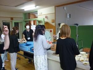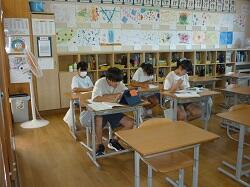 9月5日(金)に1年生の子供たちと保護者の方々が栗原市北部学校給食センターの見学に行ってきました。調理場を見学して、鍋などの調理器具の大きさに驚いていました。また、白衣を着る体験などもさせていただきました。見学の後は学校に戻り、保護者の方々の給食試食会を行いました。多目的ホールに机を並べ、子供たちと一緒に給食を食べました。配膳も保護者の方が行い「ああ、こうだった」と小学校時代を懐かしむ声が聞こえてきました。給食も「おいしい」という感想をいただきました。子供たちは、おうちの人と給食を食べて、とてもうれしそうでした。