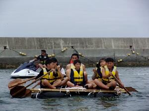 「洋上めぐり」「いかだづくり」「いかだ遊び」「バナナボート」で海の活動を満喫しました。