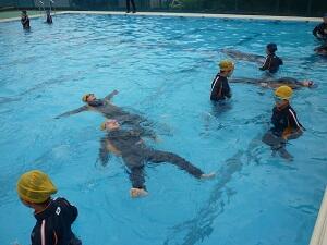 7月16日(水)、17日(木)に全学年の子供たちが着衣泳を行いました。水着ではなく、衣服を着て水に入った時や泳いだ時の違いを感じました。また、水の事故に遭った時の待ち方(浮いて待つ)を実際にペットボトルなどを浮き輪代わりにして体験しました。事故に遭わないことが一番よいのですが、もし遭ってしまった時にどうすればよいかを知っているのと知らないのとでは大きな違いがあります。自分の命を自分で守れるようになります。川や海で水遊びをする時は、ライフジャケットを着用すのもいいですね。