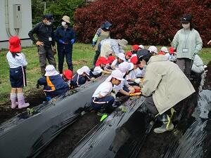 JA新みやぎ栗駒中央支店の協力を得て、サツマイモ苗の植栽を行いました。一人1本なので、合計30本ぐらいでした。順調に育てば、相当な量の収穫が見込めます。その時期が楽しみです!
