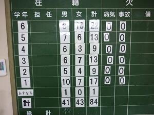 欠席0! 投稿: サイト管理者 (12/10) カテゴリー: 保健・食育 毎朝、各クラスから係の子供が健康観察板を職員室に持ってきます。その時に出欠板に欠席者数カードをはります。12月10日(水)は、11月22日(土)の学芸会以来の欠席者0です。出欠板に「0」が並んでいて、それを見るととてもうれしい気持ちになります。そして、保護者の方々に「いつも、ありがとうございます。」といつも以上に思います。 -