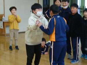 手押し相撲大会 投稿: サイト管理者 (15:11) カテゴリー: 運動・スポーツ 12月11日(木)に手押し相撲大会(初日)を行いました。寒い冬の体力づくりの一つとして保健体育委員会から提案があった取組です。今日は1回戦を行いました。下の学年の子供が上の学年の子供に勝ったり、フェイントを使ったりと、バラエティーに富んだ取組でした。勝負が決まるたびに大きな歓声が上がりました。女子のトーナメント戦に先生が参加し、見事に1回戦を突破しました。さて、優勝者に誰がなるのか、まったく見当がつきません。続きは、明日、12日(金)に行います。 -